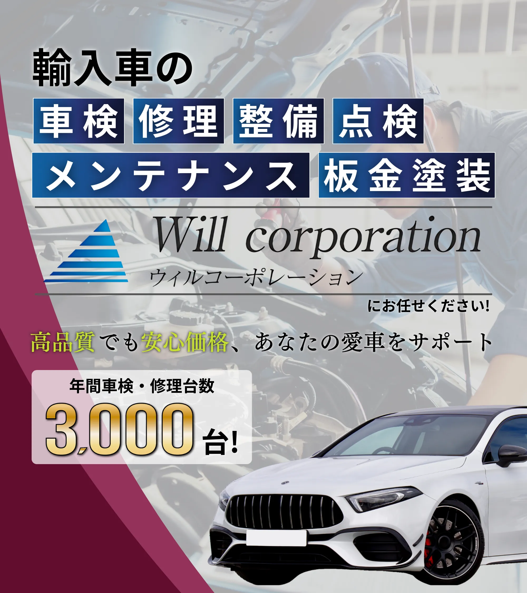 2回目以降の車検ならウィルコーポレーションが断然お得明朗会計だから安心安全!