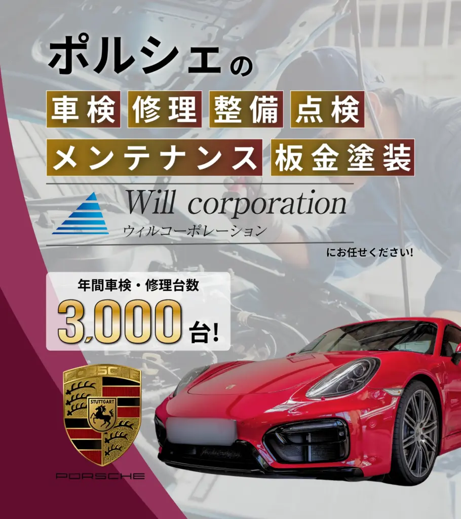 【Porsche】ポルシェの車検・修理・整備ならウィルコーポレーションにお任せ!安心サポートと高品質サービスを提供します。